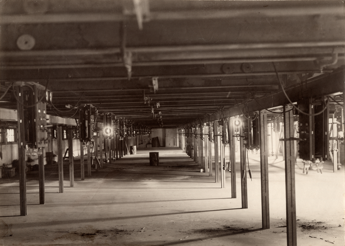 Stockholms Superfosfat Fabriks AB,Alby Karbidfabrik. Kalkkväveugnshus. Undersidan av ugnarna.