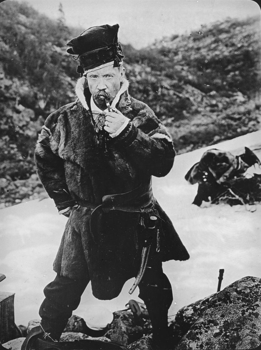Motiv från Inlandsbanan. Piprökande same.
