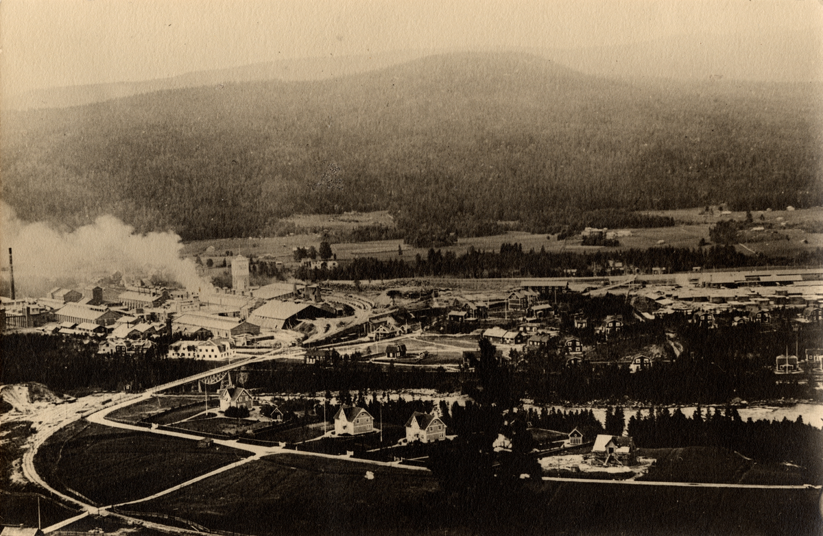 Stockholms Superfosfat Fabriks AB, Ljungaverk. Vy över fabriken och samhället.