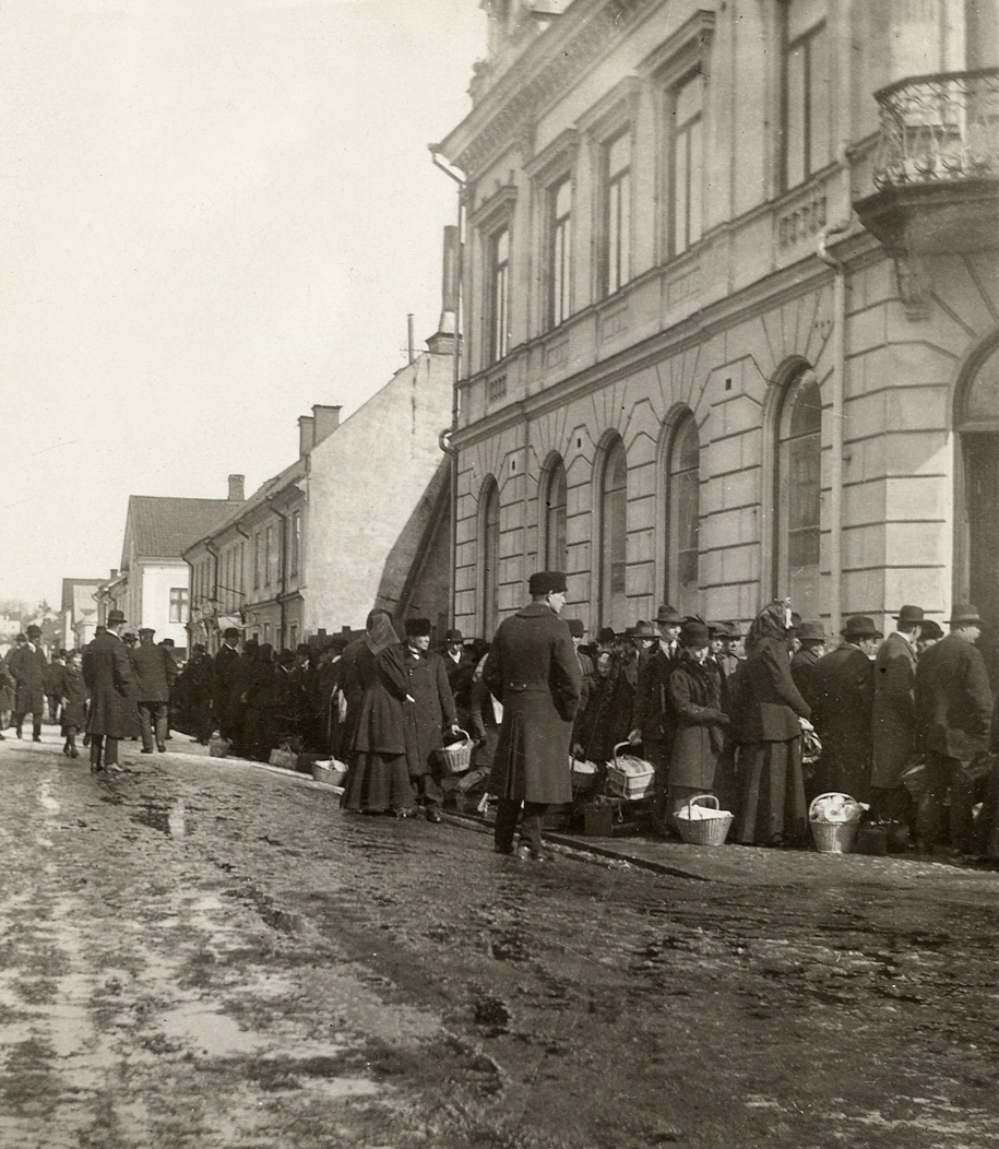 Växjö systembolag, 1917. Kö på Klostergatan.
