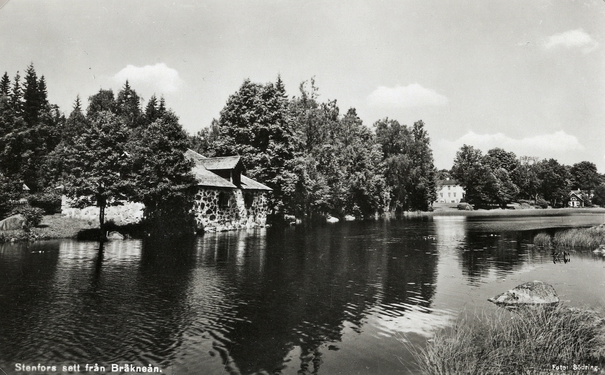Stenfors sett från Bräkneån. I bakgrunden skymtar Stenfors gård.