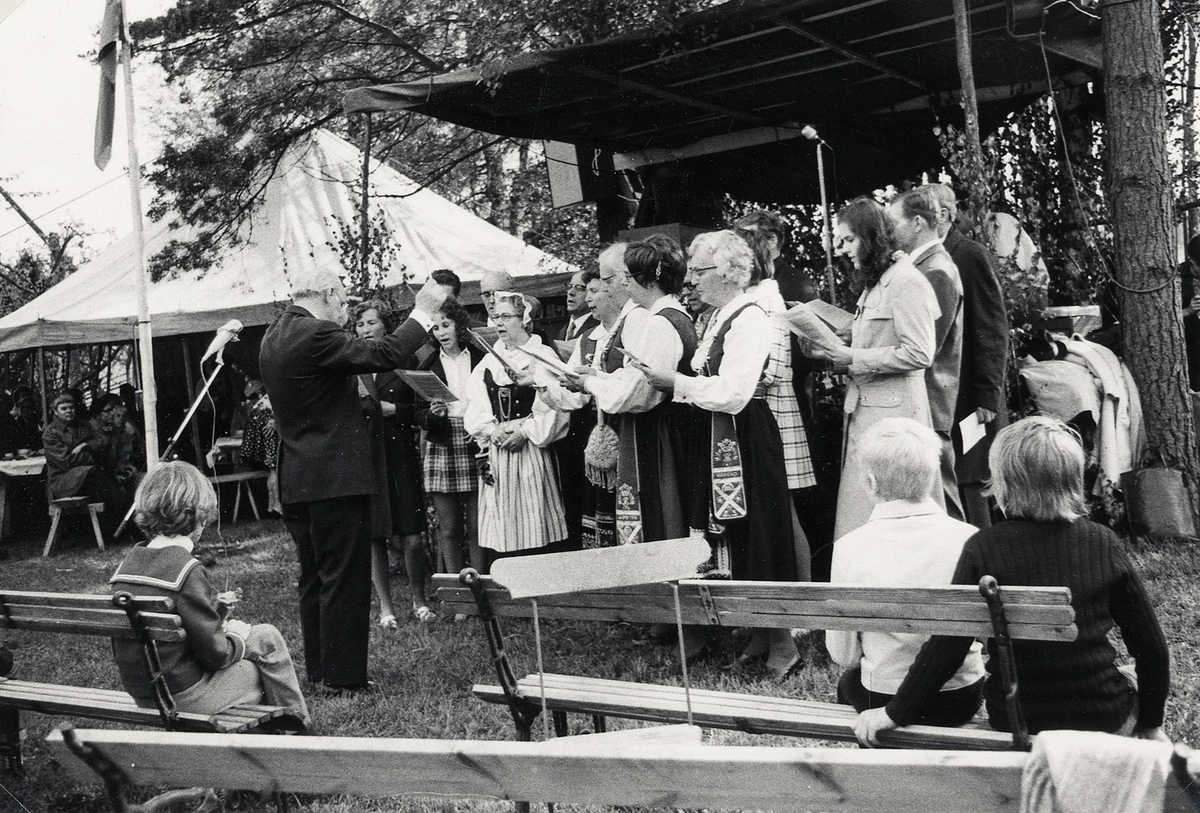 Invigning av Skatelövs hembygdsgård, 1972. Kantor Fritz Hovne leder sångkören.