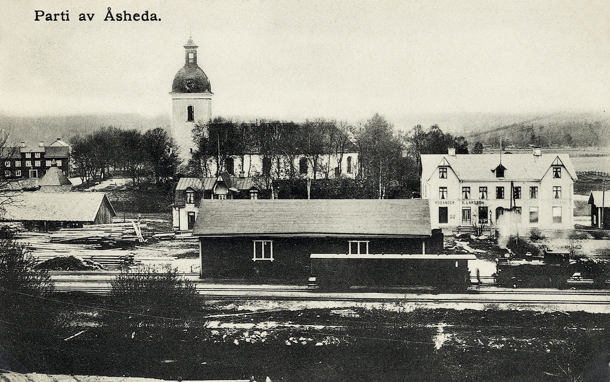 Åseda, 1910-tal. Kyrkan och Järnvägsgatan.