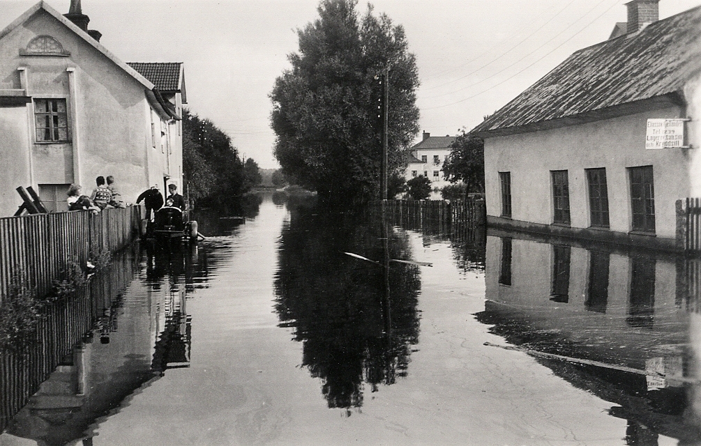 Översvämning på Liedbergsgatan, Växjö, 1940.