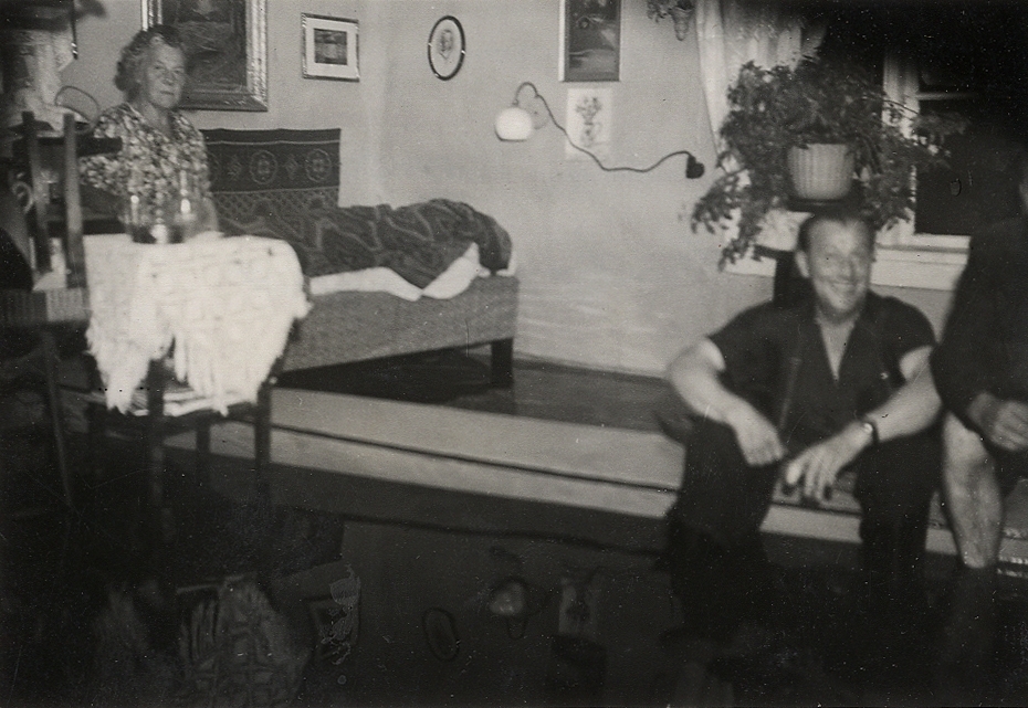 Översvämning på Liedbergsgatan, Växjö, 1940. Gustaf Granqvist i sitt översvämmade hem.