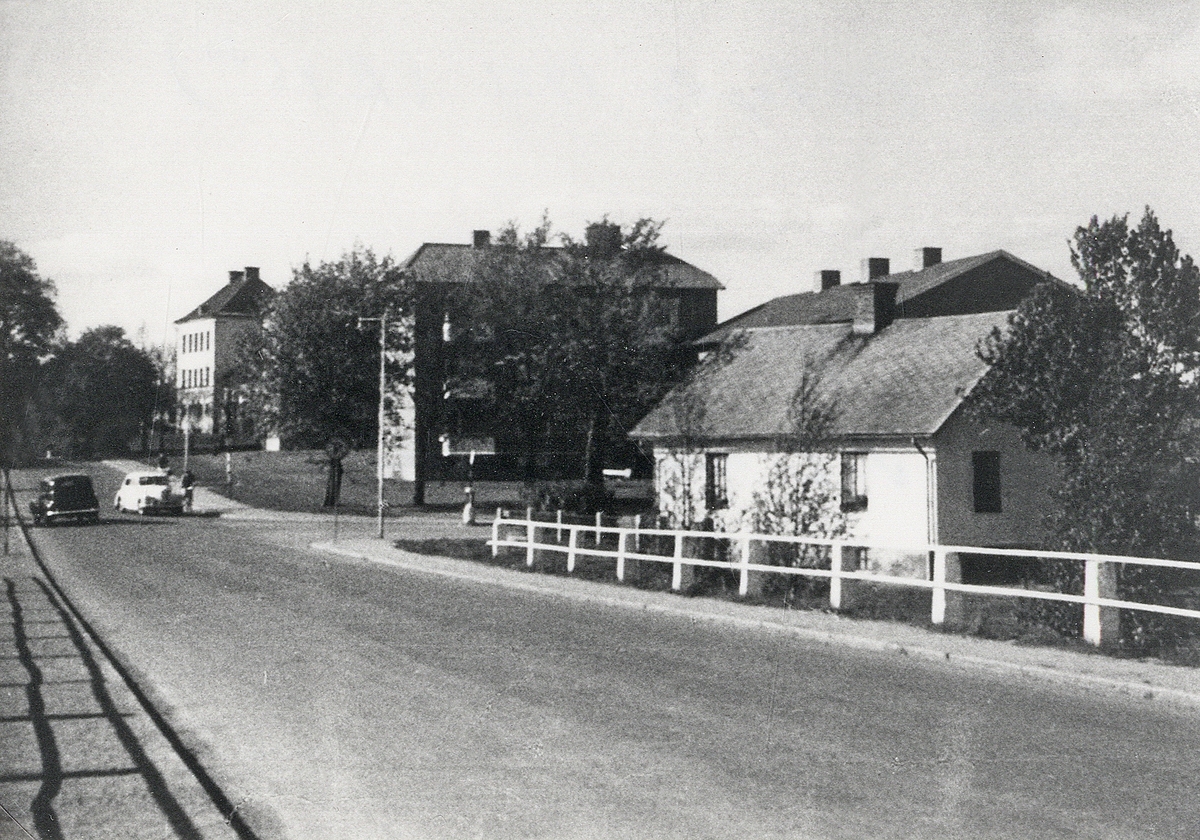 Gamla Östervägen (Ingelstadsvägen), Öster, ca 1955. I bakgrunden skymtar en del av S:t Anne gärdes