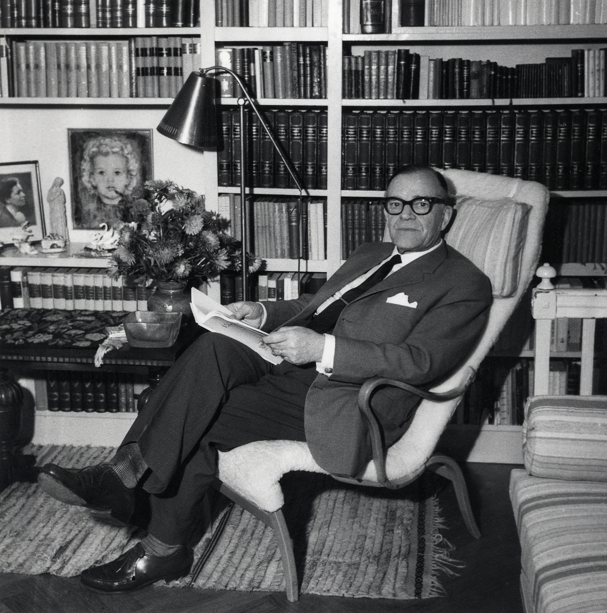 Dr. Axel Bergstrand i sitt vardagsrum, Växjö, ca 1965.