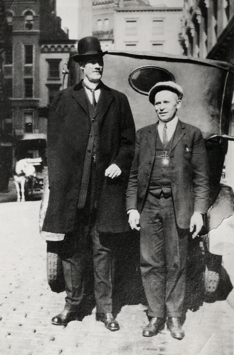 Carl Damberg med en vän på en gata i USA, trol. New York, 1920-tal.