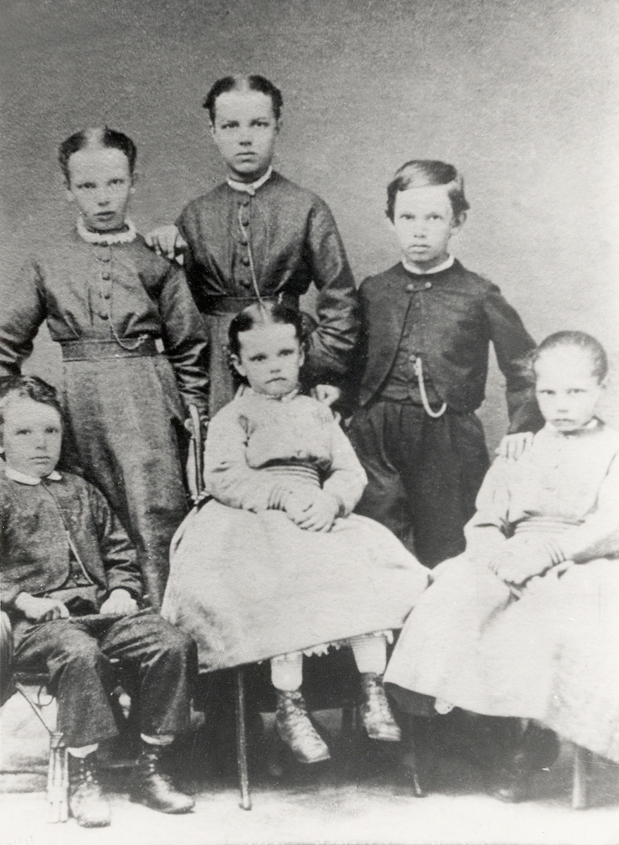 Sex syskon ur familjen Wrede har samlats hos fotografen.