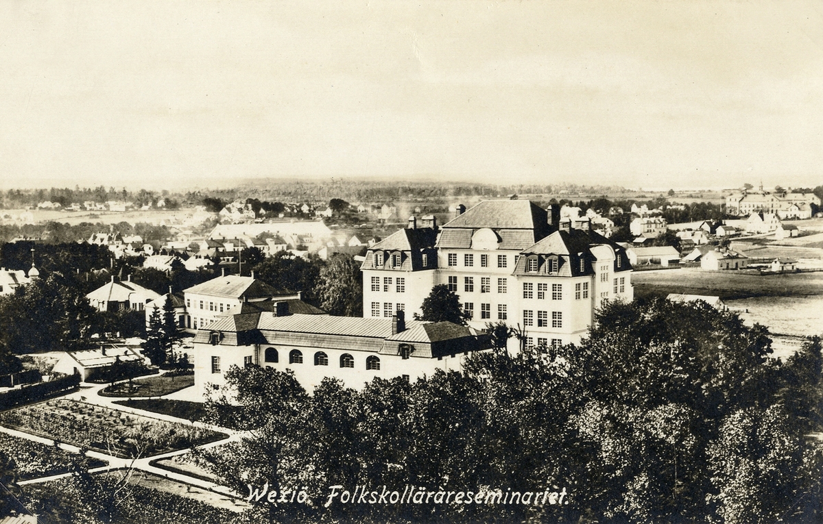 Folkskollärarseminariet (Ringsbergsskolan) fr. nordost, ca 1915. Till vänster ser man rektorsvillan och gamla seminariebyggnaden, som inom kort flyttades till kvarteret Dockan. I fonden till höger skymtar dövstumskolan.