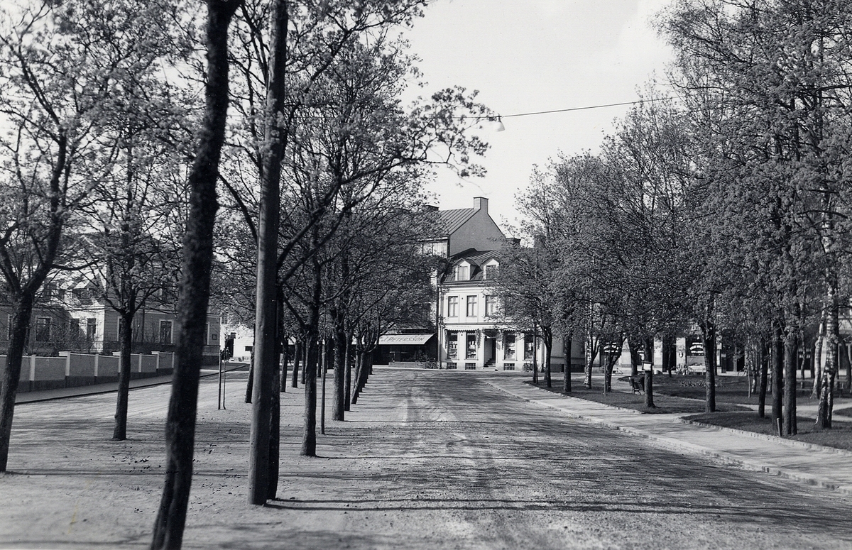 Järnvägsparken i Ljungby, ca 1930. Vy mot Storgatan.