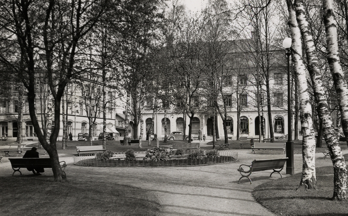 Järnvägsparken i Ljungby, 1938. Vy mot Storgatan.