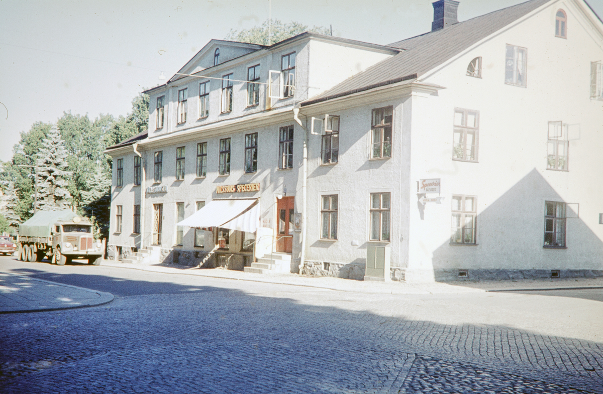 Cronqvistska gården i hörnet Nygatan/Västergatan, Växjö. Huset revs 1967.