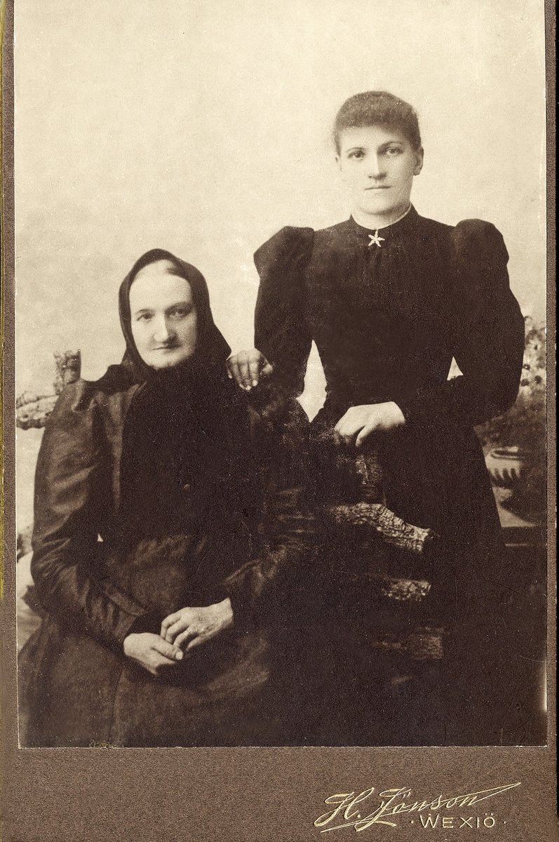En yngre och en äldre kvinna poserar för fotografen.