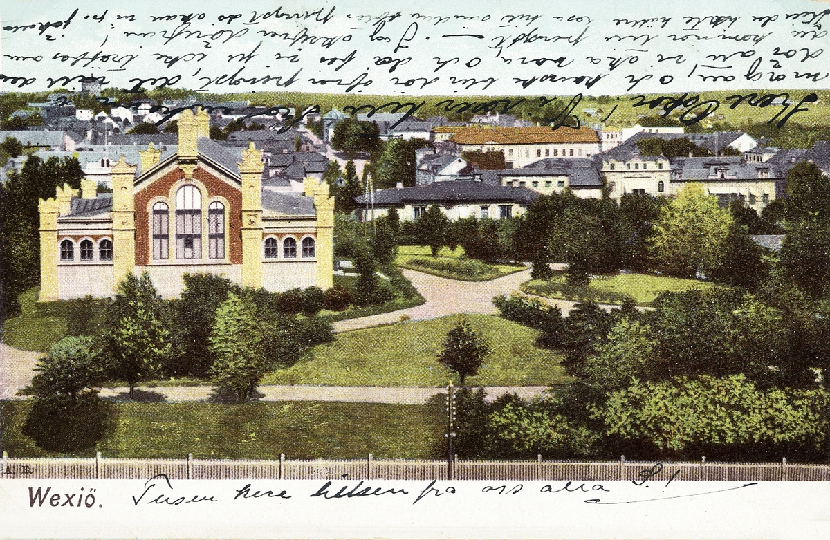 Vy från Växjö högre allmänna läroverk norrut mot innerstaden, Växjö, 1907.