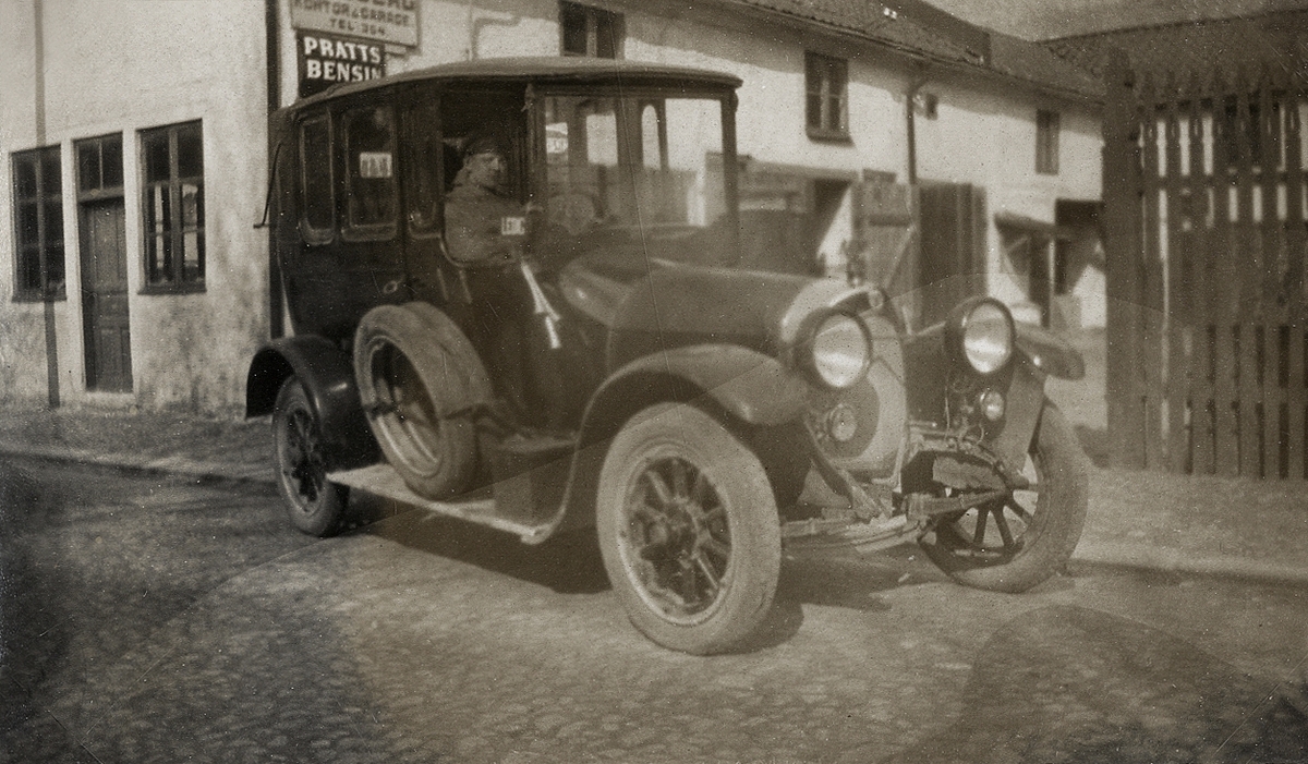 Personbil, Scana-Vabis modell 1916, Växjö ca 1920. En okänd man sitter bakom ratten.