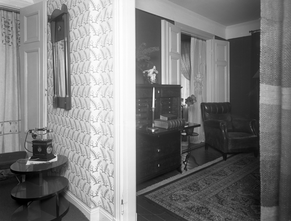 Fru Fornanders lägenhet på Södra Järnvägsgatan 17. Interiör av hall / bibliotek.