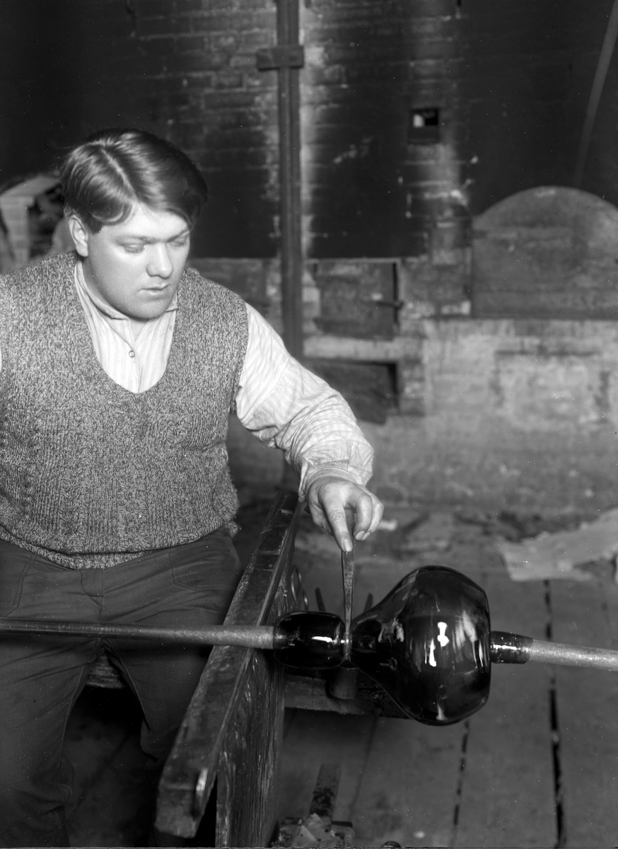 Uppblåsare vid Strömbergshyttans glasbruk, 1935.