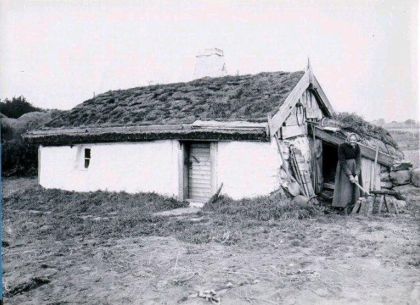Gamla Katrinas stenstuga. Katrina berättar för fotografen: "Vi haddet så svårt i ungdomen, gubben å ja. Far feck jöra dagsverke te tre bönner i bun å deres öjegränser stötte innte vår löcka. Alla sa att ho hörde te deres äjer. Sommra geck, å far kunne inget tjäna. Så ble dä lantmäteri i bun, som skulle skeftas. Far passa på och feck följa lantmätarn mä stånga, men så kom bönnerna å velle han te hjälp. Dä geck lantmätarn ente på. Far talte då om förn, hur dä va, och hur svårt vi haddet. "Om du sköter däk fint hos mäta, Nisse, så sa ja hjälpa de nära reser".När skeftet va slut kom lantmätarn hem en kväll å sae te gubben, "När nu alla handlingar vuent laja kraft, har ja gitt däk ett litet fideikommiss, som ingen mer än vår Herre kan ta ifrån däk. När sen kartera kom kunne inte bönnerna få faj ína å ingen å dom tordes rita dit a i sina ajer på karta si, dä hadde vart förfalskning. Så vår löcka finns ente på Sveriges karta". Knagges stuga låg intill soldat Sabels ställe under Kullagärdet.