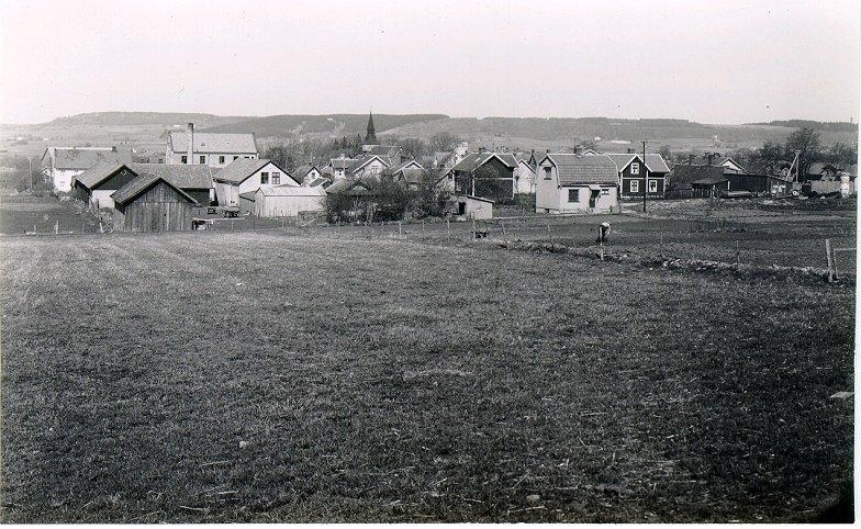 Från Borgmästareparken före bebyggelsen därupppe. Byggnaden med brutet tak ligger vid Petter Ryttnings väg, tillhör numera firma SAAB. Bakom denna byggnad Repslagaregatan 4 till höger 3 till vänster. Byggnaden till vänster firma Aristo.