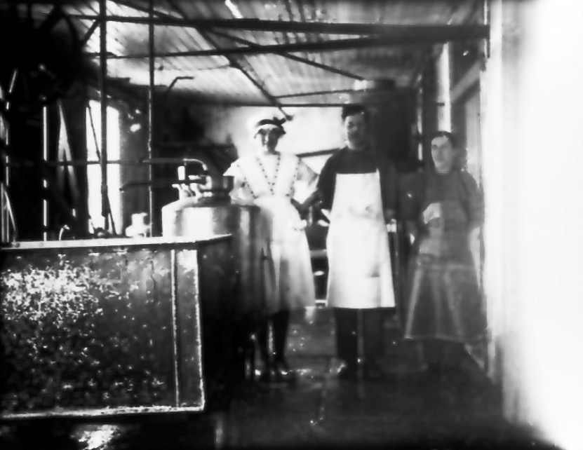 Floby mejeri. Mejerskan Hulda Fält, Sven Svarén och Ejnar Gegerfelt.