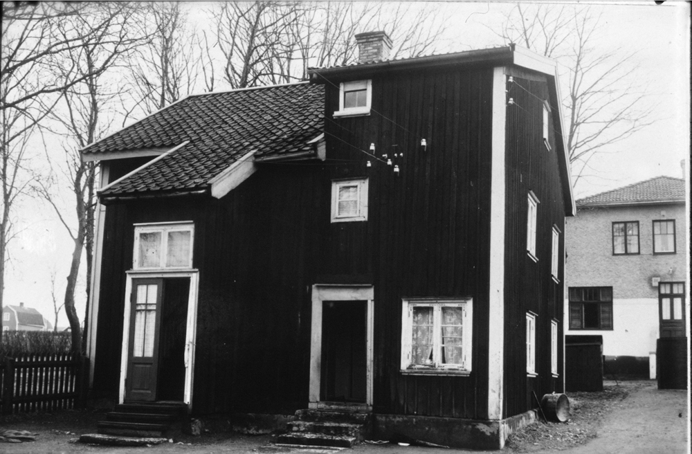 Kv. Vagnmakaren, Östertullsgatan 6. " I vär´t ". Foto: febr. 1939. I det hus som förut stod där det synliga övre ljusa huset är uppfört bodde på sin tid den namnkunnige storjägaren Gustaf Kolthoff. Dessförinnan bodde han i Settergrenska huset vid Stora torget, men måste flytta därifrån emedan han lät såga hål i dörrarna så att hans många jakthundar obehindrat skulle kunna passera ut och in när det behagade dem. Men den åtgärden behagade icke hyresvärden. Kolthoff - skaparen av Biologiska museet i Stockholm - som var född 14/12 1845 i Sandhems socken och jägmästare i Vartofta revir, flyttade sedermera till Vartofta. Han avled i Stockholm den 25 oktober 1913.