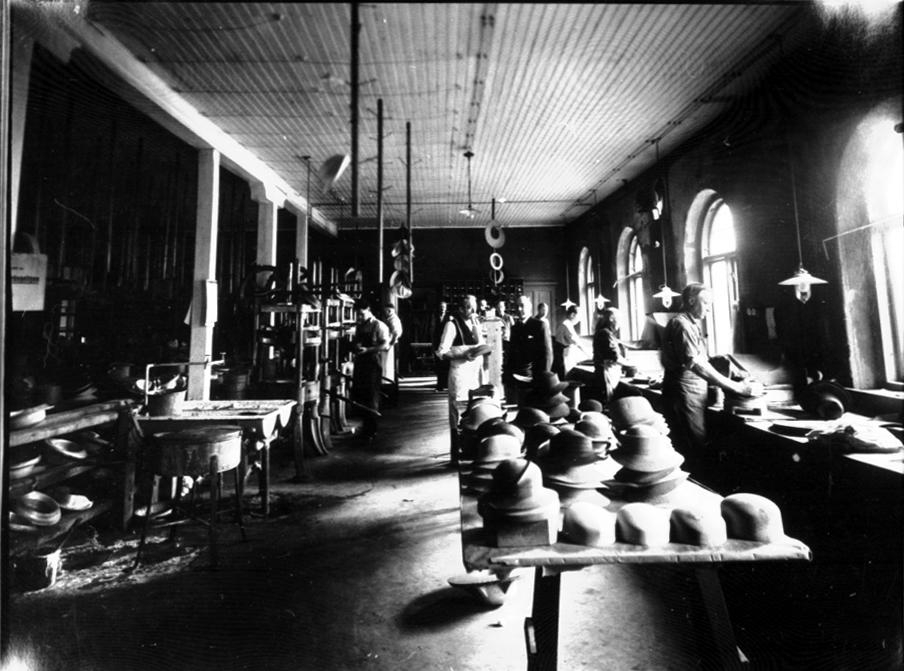 Rantens Strå- och filthattsfabrik. Dressing och pressverkstad. I mitten på bilden disp. Sten Andersson och verkm. Otto.
