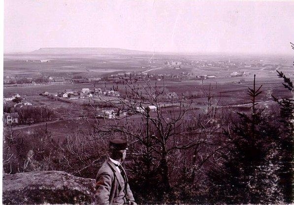 Utsikt från Mösseberg. Foto 1895. 1. Fredriksberg, 2. Agnestad, 3. Vilhelmsberg (kallades ofta Fläskås), 4. Lasarettet, 5. S:t Olofs kyrka, 6. Vilhelmsro, 7. Rantens Snickerifabrik, 8. Rantens gård, 9. Rantens hotell, 10. Järnvägsstationen, 11. Engnells kafé, 12. Lidgatan 1,13. Winroths Åkeri och vedaffär, nuvarande Postkontor, Falköping 2, 14. Villa i Mössebergsparken, 15. Villagatan 24, 16. Eriksbergs Herrgård, 17. Lejonkullen, numera nedrivet i hörnet Scheelegatan/Danska vägen, 18. med all sannolikhet Redaktör Erik P Vrangs.