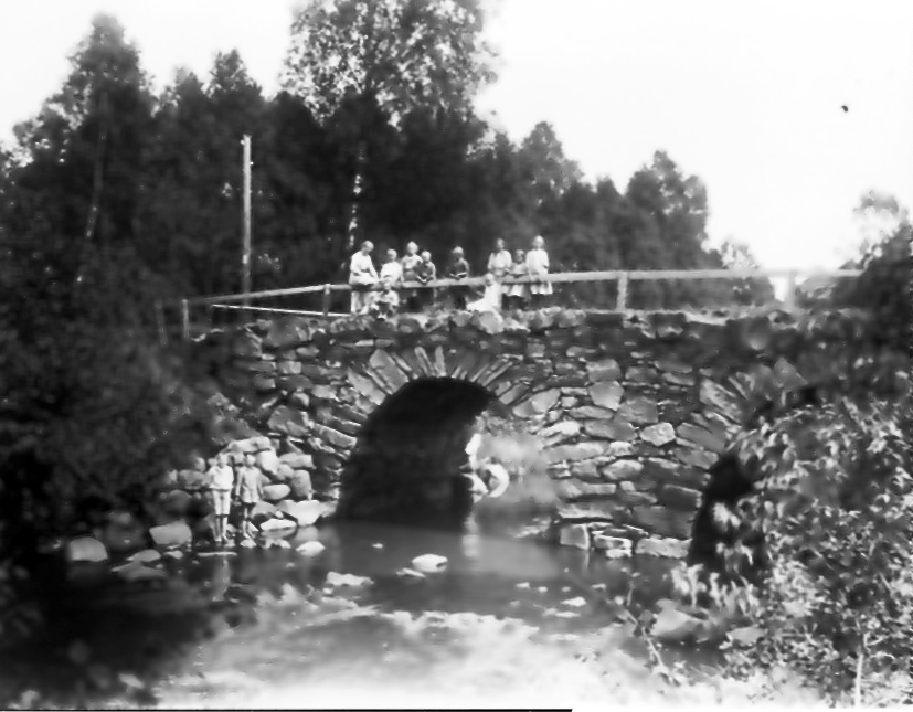 Gamla Håvens bro där vägen Heden-Höverö korsar Lidan. Barnen i Kastholmens skola på utflykt i början av 1920-talet.