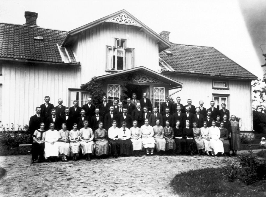 Konfirmandåterträff hos kyrkoherde Dahlborg i Prästgården Björke. På rad 2 nr 1 Torsten Fält.