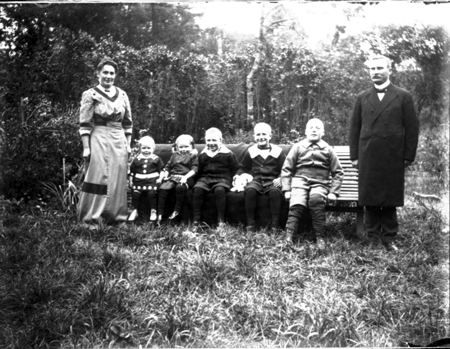 Kyrkoherde Karl E. Karlsson, Åsle 1876-1936, Brita Karlsson, 1882-1964, Karl-Henrik, 1905-1970, Ingmar, 1907-1974, Bertil, 1908-1988 kyrkoherde i Floby (Bertil Edvardsson), Birgit, född 1911, Ingegerd, 1913-1977.