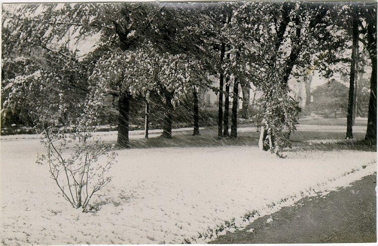 Planteringsförbundets park. Gångväg från S:t Olofsgatan uppåt parken. Ett stycke till vänster dammen och musikpaviljongen. I bakgrunden byggnader vid Parkgatan.