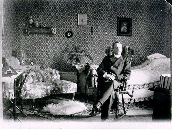 Ungdomsporträtt av Direktör Gunnar Stenbeck född 1870 på Gudhems Kungsgård i Gudhems sn. Gunnar Stenbeck har till stor del bekostat utgrävningarna vid Gudhems klosterruin och hans urna finns placerad inmurad i ruinen. Foto 1902.