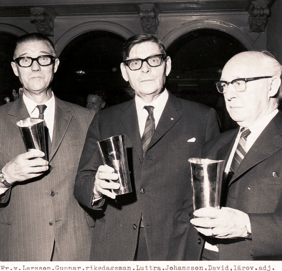 Tingets högtidliga avslutning 1970. Från vänster: Gunnar Larsson, riksdagsman, Luttra, David Johansson, Lärov. adj. Birger Andersson, red, riksdagsman, Tidholm.