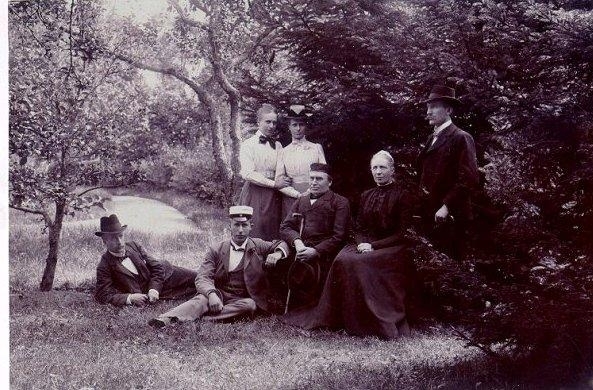 Nils Josef Linnarsson, kyrkoherde, kontraktsprost och domprost. Domprosten med familj. Makan Zafira Linnarsson, född Leijonflycht, liggande troligen sönerna Ernst och Bengt. Eventuellt döttrarna Emmy och Anna.