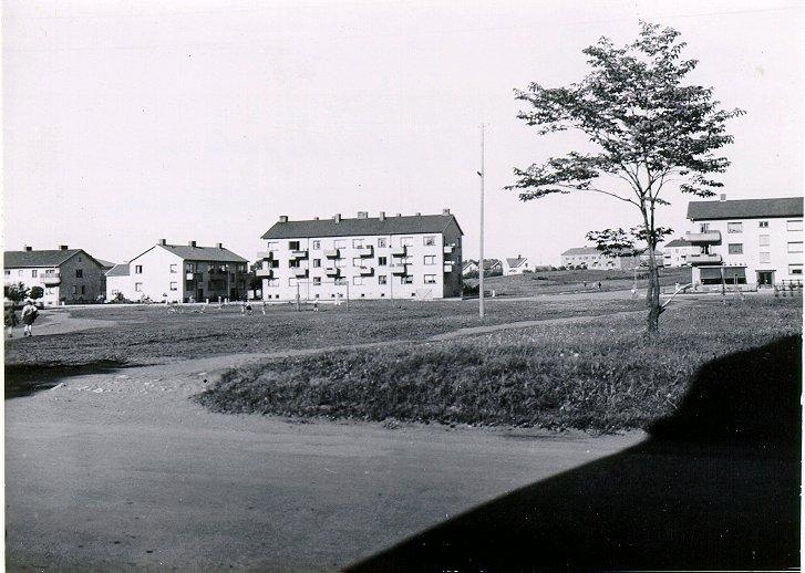 Kv. S:t Matteus. Närmast Botvidsgatan och på andra sidan den öppna platsen S:t Sigfridsgatan. Ovanför stolpen utgår Fredriksbergsvägen från S:t Sigfridsgatan. Byggnaden till höger S:t Sigfridsgatan 12 (Settergrens) och på andra sidan Fredriksbergsvägen S:t Sigfridsgatan 14. Högre upp mellan dessa hus är nu Tingshuset beläget. Den öppna planen ligger nordost om folkskolan.
