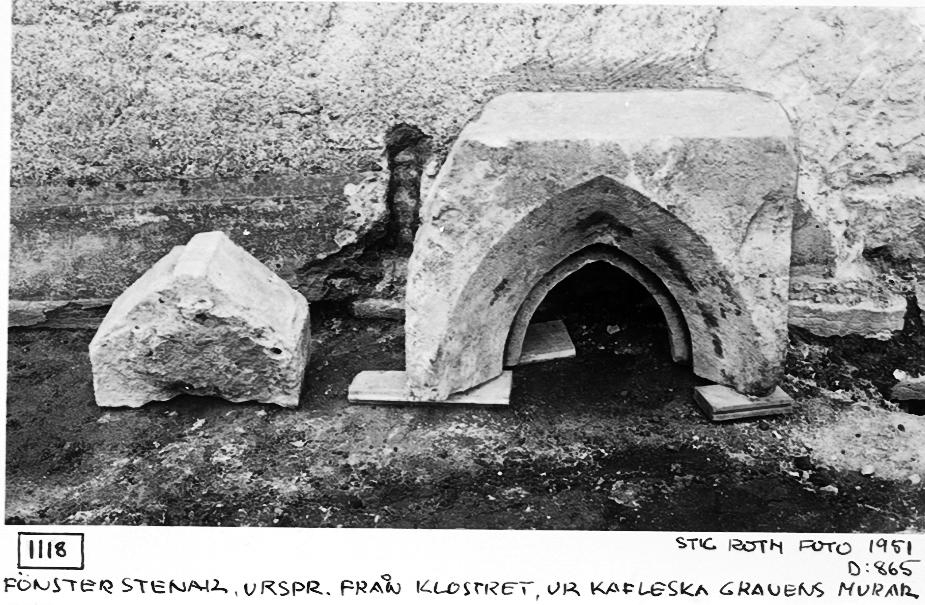 Fönsterstenar urpsr. från klostret. Ur Kafleska gravens murar.