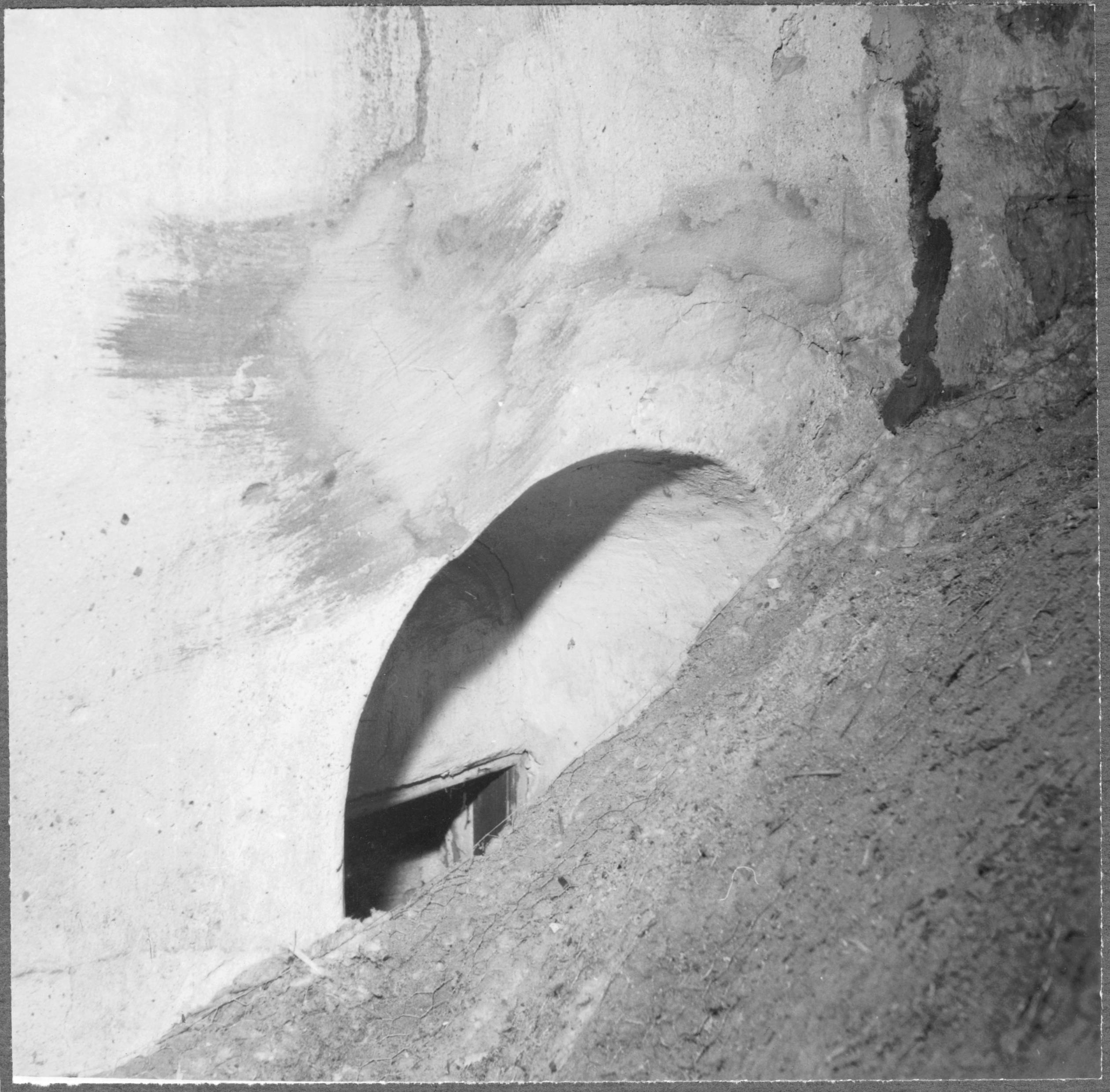 Romanskt fönster i långhusets östra travé, sett från kyrkvinden.