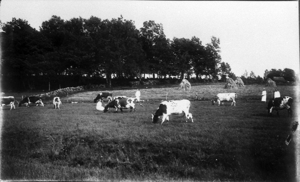 Betande kor på Österåsen, Eriksberg. Fr.v. Anna och Edit Johansson, Berta på Veken, Elsa Johansson.