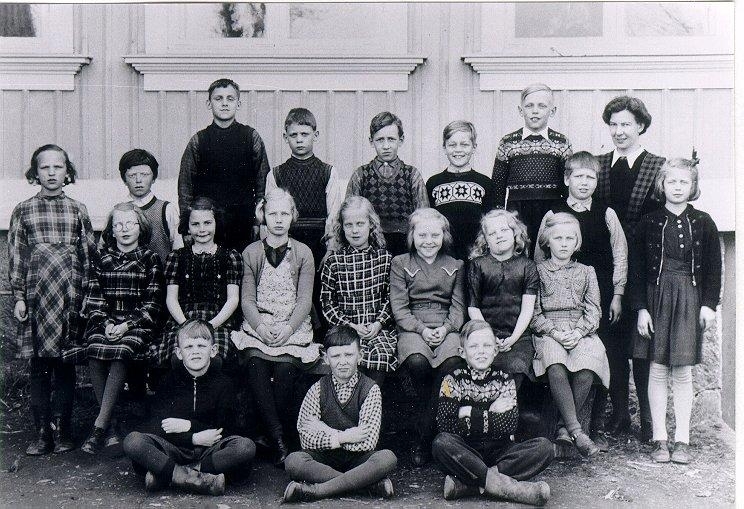 Yllestads skola 1946. Sittande på marken från vänster: Sven-Olof Sandahl, Kättilstorp, Gösta Blom, Smärtorna, Yllestad, Elof Wallin, Gunnabo, Yllestad. Sittande från vänster: Sara Moberg, Höjentorp, Yllestad, Gunborg Hansson, Tomten, Yllestad, Maj Karlsson, Långebacka, Yllestad, Ragna Axelsson, Spelaregården, Yllestad, Eivor Gustavsson, Guddarp, Yllestad, Signe Karlsson, Hallebacka, Yllestad, Anna Gustavsson, Skattegården, Badene, Yllestad. Stående från vänster: Viviann Andersson, Vistorp, Bernt Karlsson, Ödeberg, Yllestad, Mats Gustavsson, Badene, Yllestad, Bengt Pedersén, Yllestad, Lennart Thor, Kättilstorp, Per Hellner, Yllestads skola, Sture Sandahl, Yllestad, Brita Carlberg (lärare) Yllestads skola, Assar Svensson, Nybygget, Yllestad, Inga Wallin, Kättilstorp.