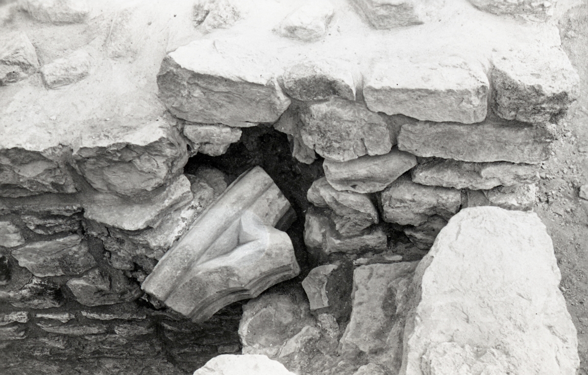 Kapitelsalen. Masverksten använd som valvanfang i sv. hörnet (jfr bild 421).