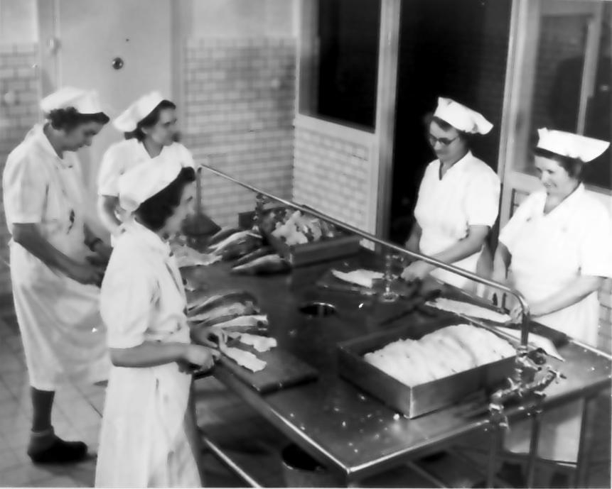 "Det blir fisk till middagen" (Lasarettet). Från utställningen "Falköping i bild" 1952.