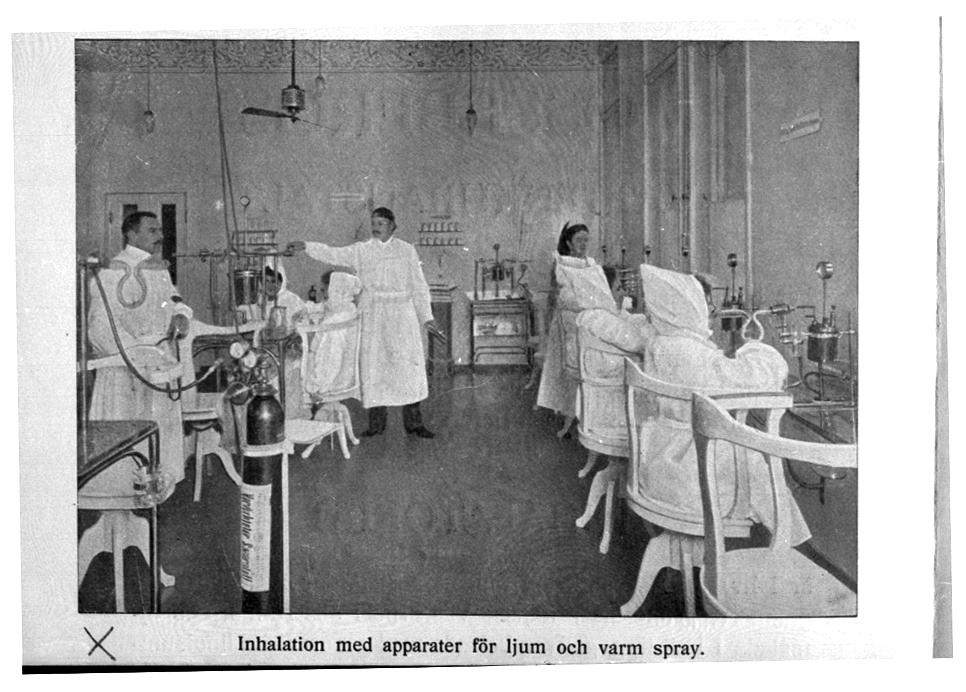 Inhalatoriet. Inhalation med apparater för ljum och varm spray.