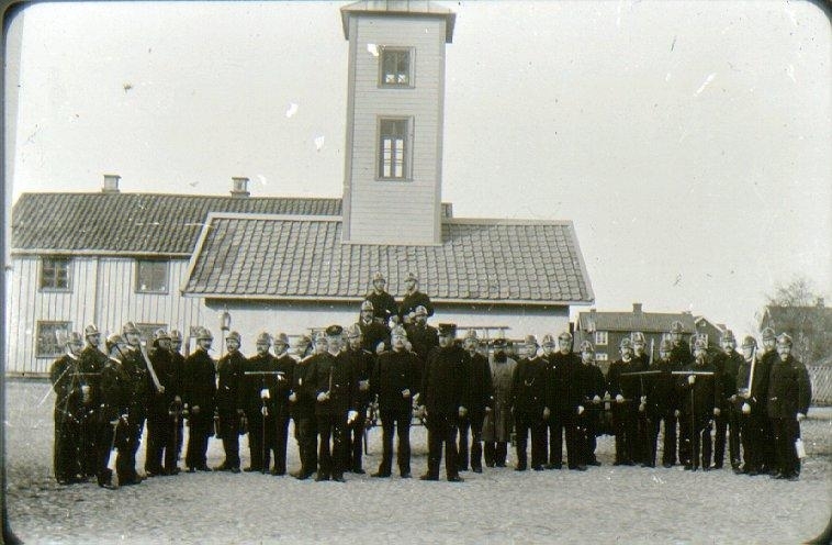 Brandkåren utanför gamla spruthuset på Trätorget.