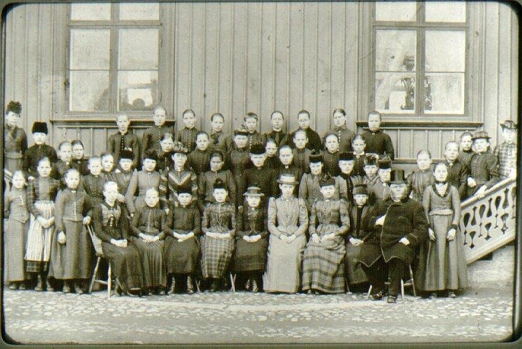 Kyrkoherde Hallén med konfirmander. Slutet av 1800-talet.