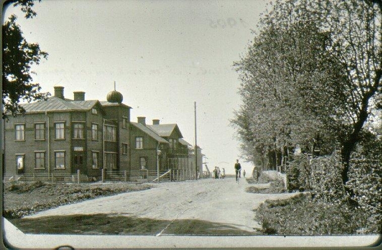 Danska vägen. Längst bort t.v. missionshuset, som då var under byggnad. 1935 var bebyggelsen klar hela Danska vägen ända fram till Lejonkullen.