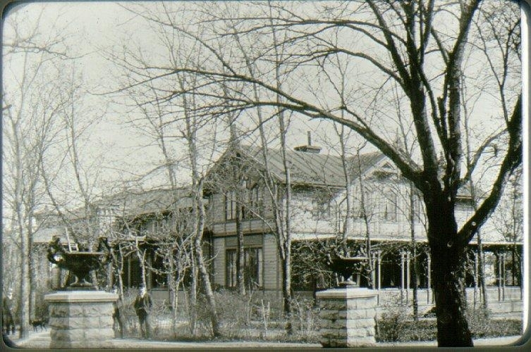Badreaturangen (med Danska Vägen). Mössebergsgatan 13. Huset revs 1962. I förgrunden portarna till parken innan grindstugorna byggdes.