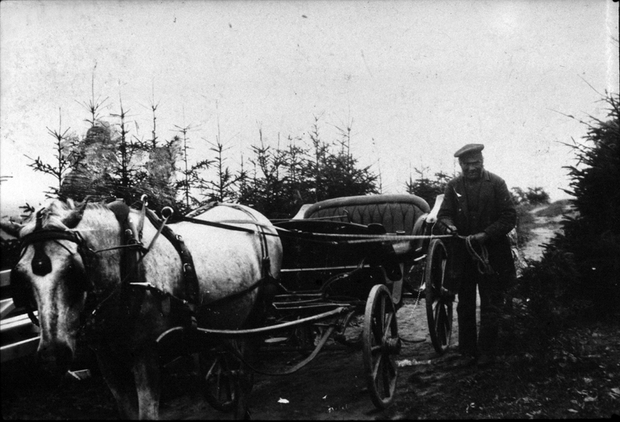 Mössebergs bad, hästskjuts, det färdmedel upp till Mössebergs topp som stod badgästerna till buds för åtskilliga årtionden tillbaka.