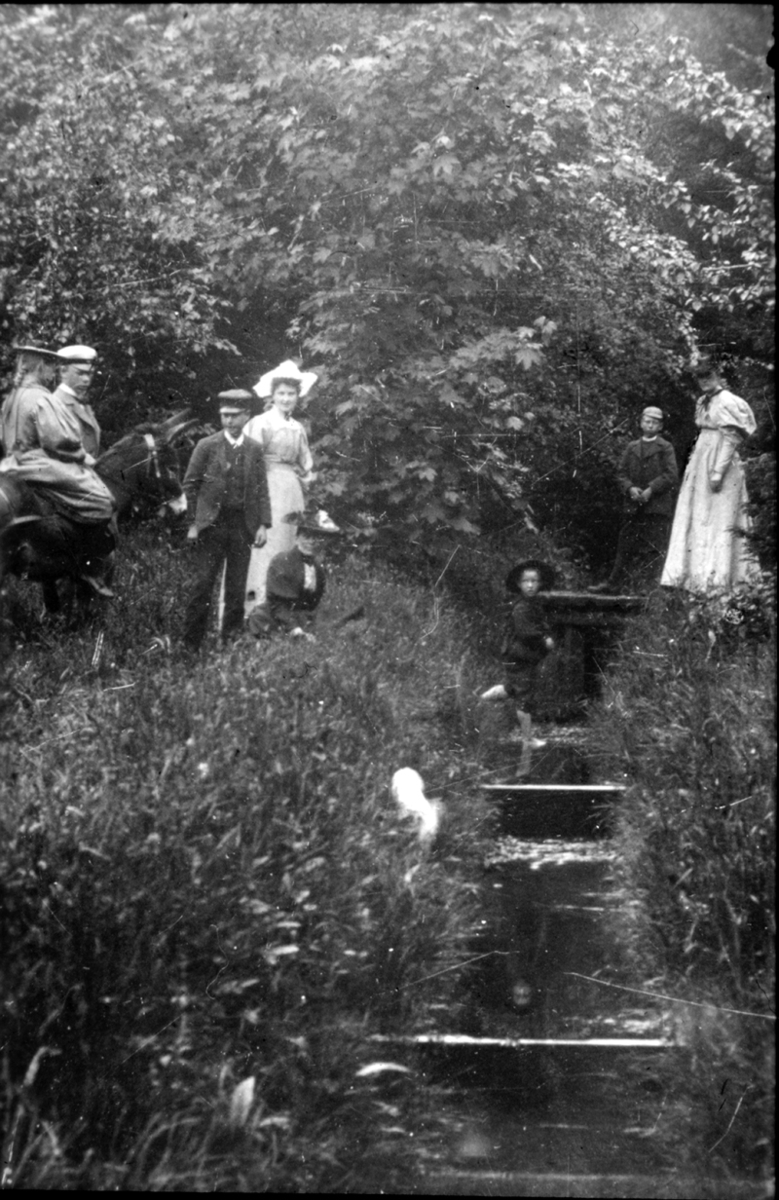 Mössebergs bad, Kneipp-bäcken, med bolagets ena åsna samt badgäster.