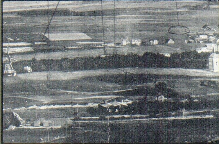 Utsikt över Falköping. Längst t.v. Rantens kvarn, t.h. därom vaktmästarehuset i Plantis. Streck nr 3 från vänster mot teatern "Enigheten". Streck nr 4 mot Plantis. Streck nr 5 med det ringade området: senare Odenplan.